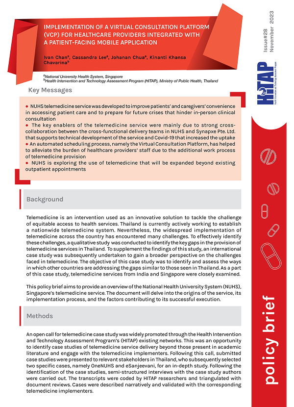 – The key enablers of the telemedicine service were mainly due to strong cross-collaboration between the cross-functional delivery teams in NUHS and Synapxe Pte. Ltd. that supports technical development of the service and Covid-19 that increased the uptake