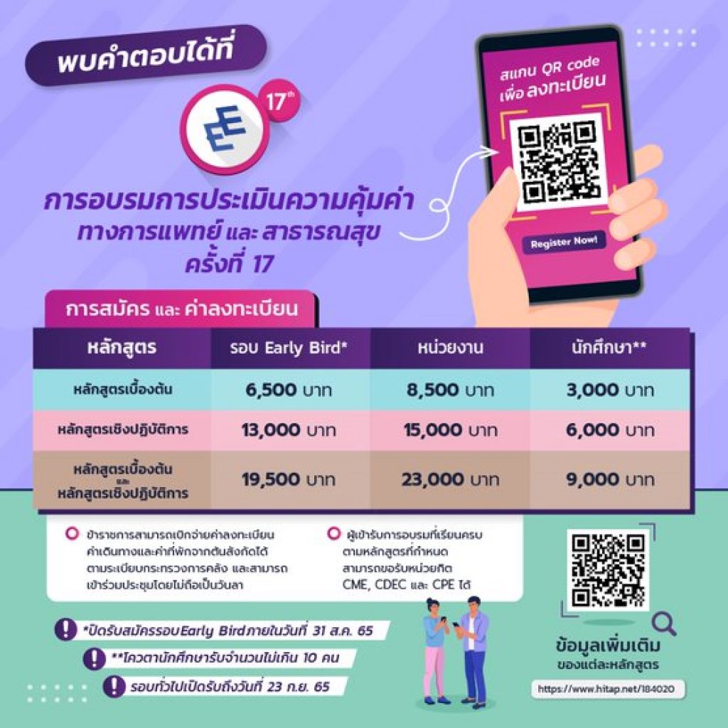 พบคำตอบได้ที่การอบรมการประเมินความคุ้มค่าทางการแพทย์และสาธารณสุข ครั้งที่ 17