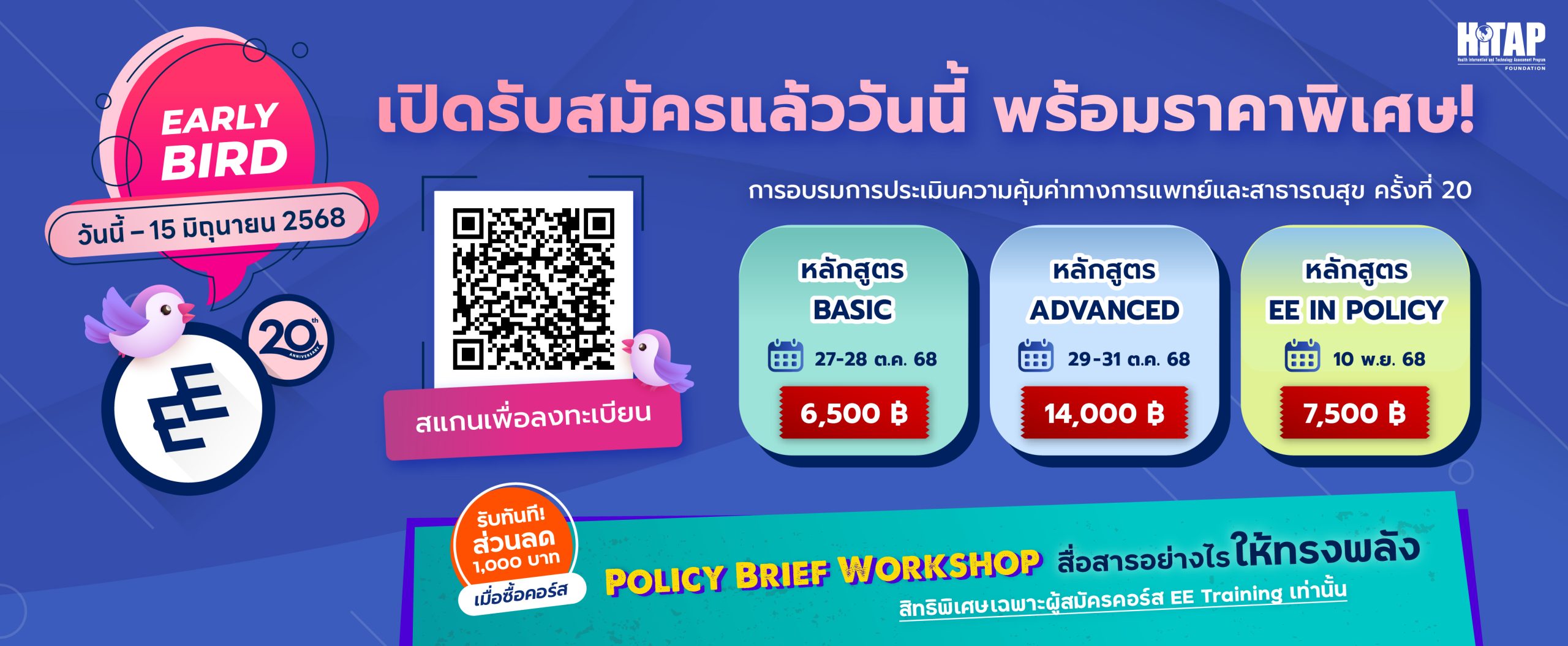 เปิดรับสมัครแล้ว! การอบรมการประเมินความคุ้มค่าทางการแพทย์และสาธารณสุข ครั้งที่ 20 (EE20)