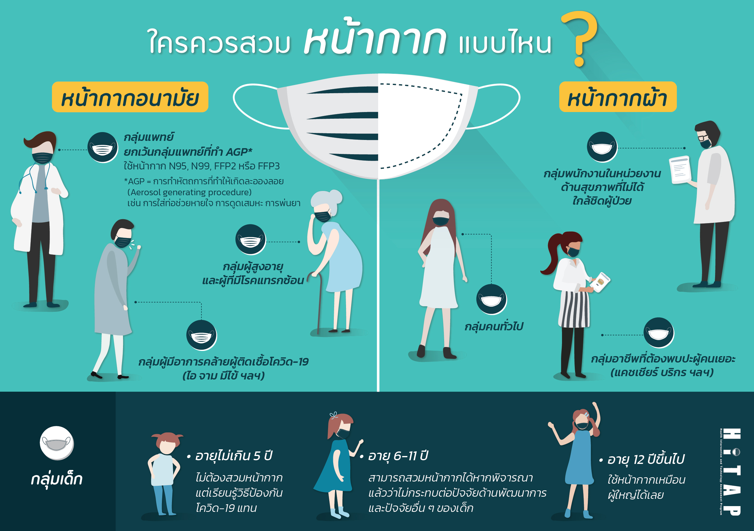 กลับมาแล้วครับสำหรับบทความเกี่ยวกับหน้ากาก สำหรับวันนี้เราจะมาจำแนกกันครับว่าใครควรสวมหน้ากากแบบไหนกัน ข้อมูลที่นำมาแบ่งปันนี้เป็นคำแนะนำที่ WHO ได้ออกมาเมื่อวันที่ 5 มิถุนายนที่ผ่านมา[i]