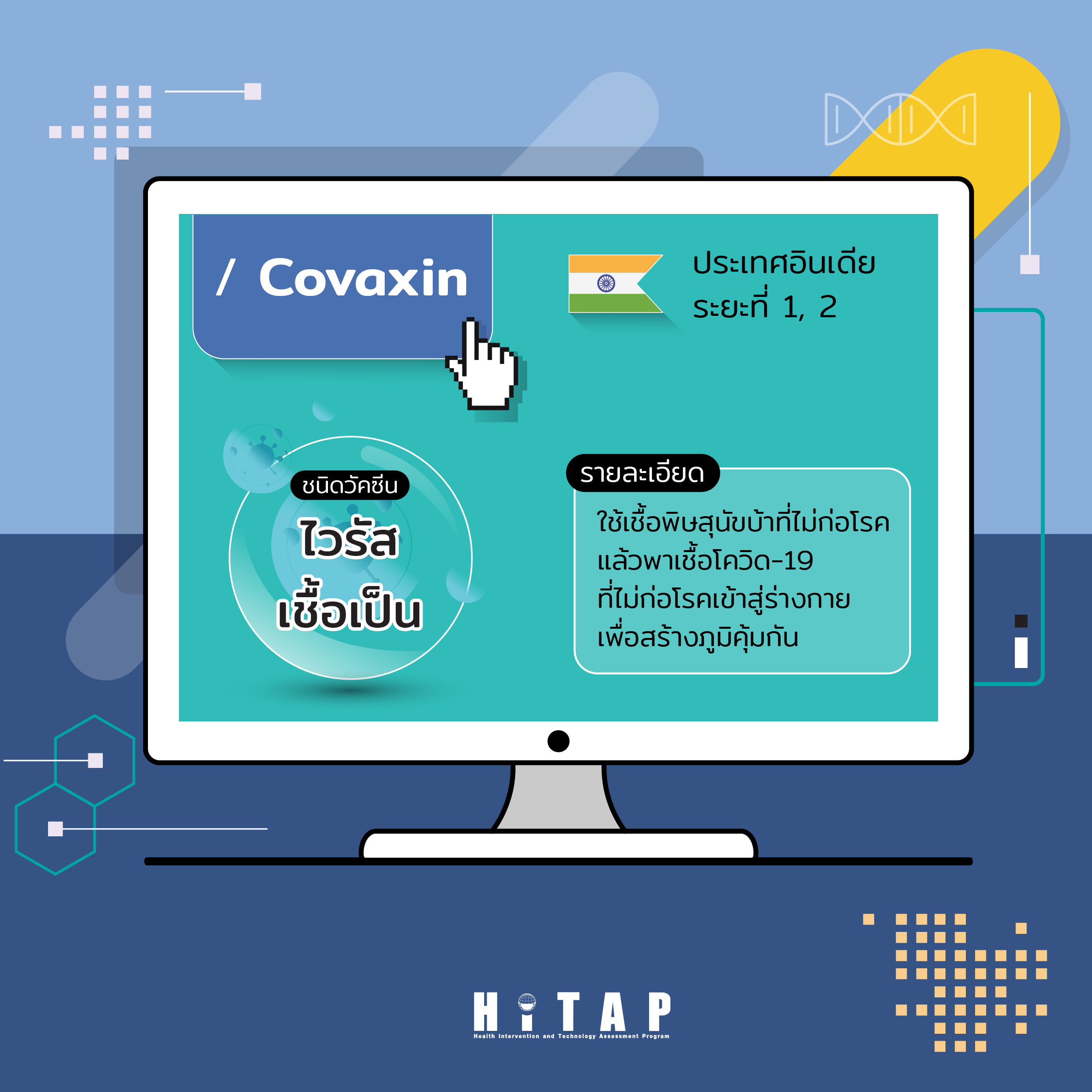 เริ่มต้นที่ประเทศอินเดีย บริษัทเอกชนชั้นนำด้านการผลิตวัคซีนได้ร่วมมือกับสถาบันไวรัสวิทยาแห่งชาติและสภาวิจัยการแพทย์อินเดีย ในการพัฒนาวัคซีนต้านโควิด-19 ชื่อว่า Covaxin ซึ่งใช้เชื้อพิษสุนัขบ้าที่ไม่สามารถก่อให้เกิดโรคได้แล้วเป็นพาหนะพาเชื้อโควิด-19 ที่ไม่ก่อให้เกิดโรคแล้วเข้าสู่ร่างกาย วัคซีนชนิดนี้กำลังอยู่ระหว่างการทดลองระยะที่ 1 ซึ่งเป็นการทดลองในคนกลุ่มเล็ก ๆ และระยะที่ 2 ซึ่งเป็นการทดลองเฉพาะกลุ่ม เช่น เด็ก ผู้สูงอายุ เป็นต้น[i]