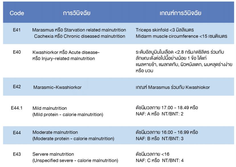 เกณฑ์ ICD Code ที่ใช้สำหรับการวินิจฉัยภาวะทุพโภชนาการ