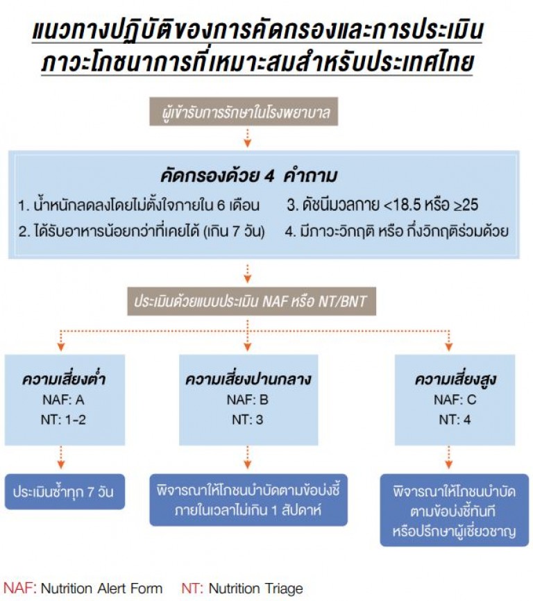สามารถติดตามแนวทางการคัดกรองและการประเมินภาวะโภชนาการที่เหมาะสมสำหรับประเทศไทยได้ที่ https://www.hitap.net/research/165294