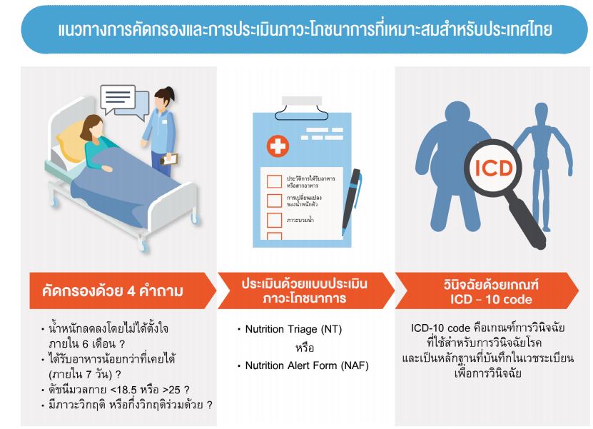 จากปัญหาภาวะทุพโภชนาการของผู้ป่วยที่นอนโรงพยาบาล สู่แนวทางการคัดกรองและประเมินผู้ป่วยในคนไทย