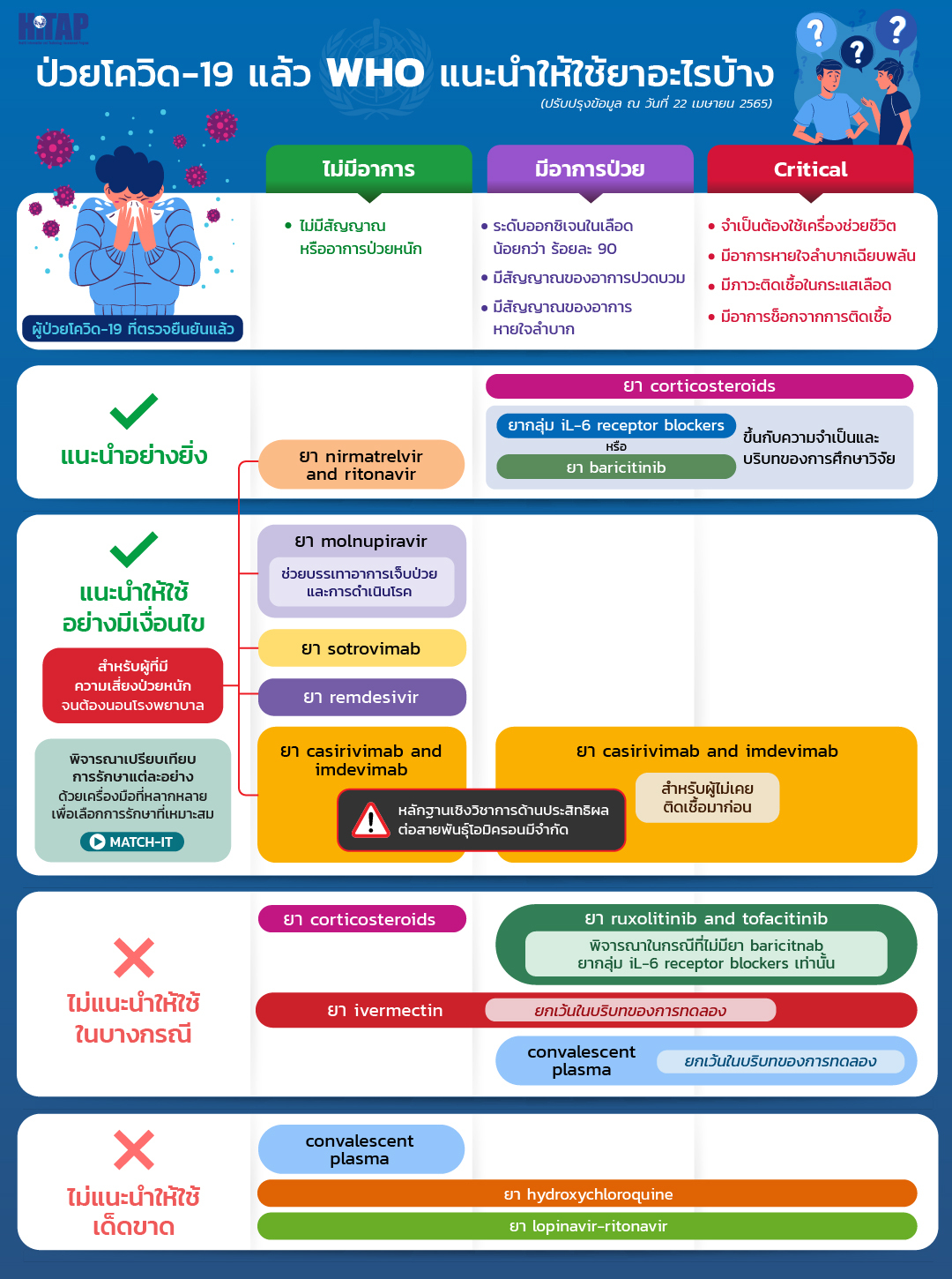 อ้างอิงข้อมูล https://www.who.int/publications/i/item/WHO-2019-nCoV-therapeutics-2022.1