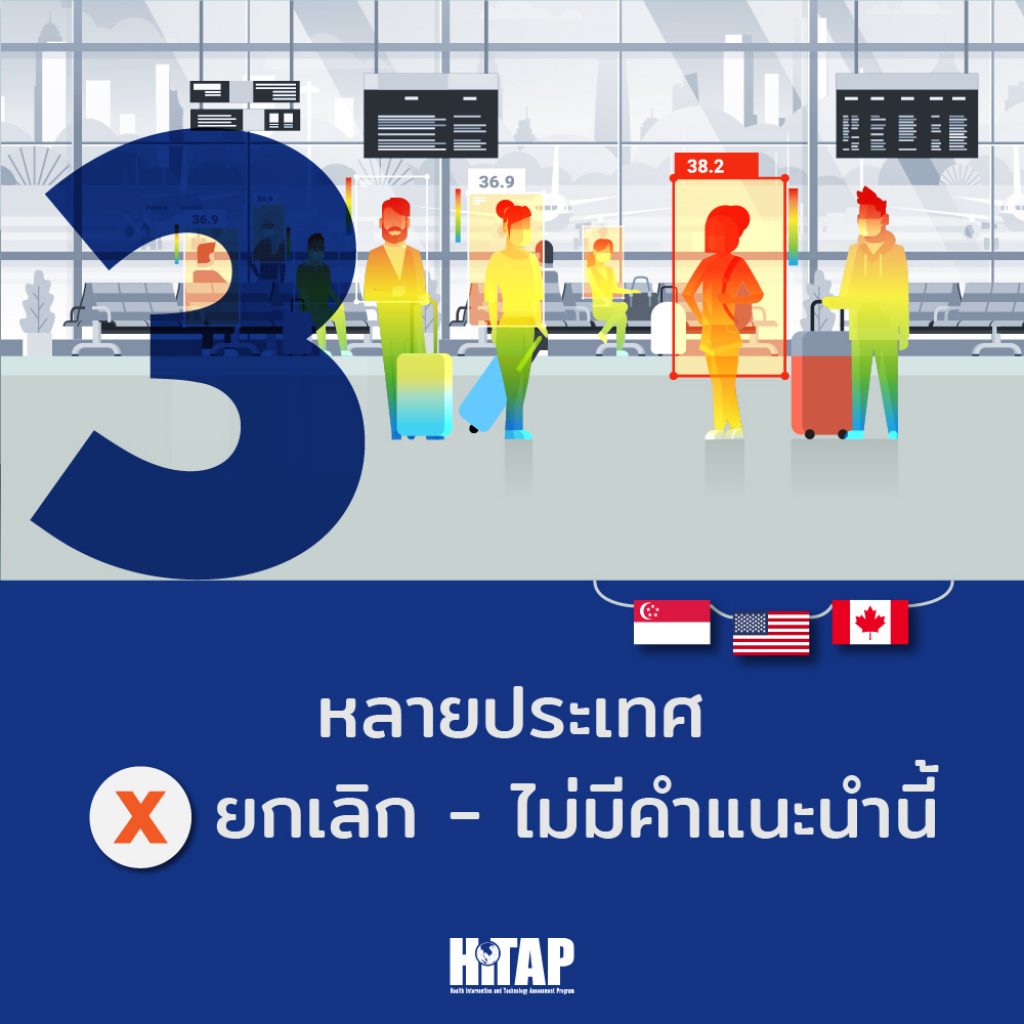หลายประเทศยกเลิกคำแนะนำในส่วนของมาตรการคัดกรองด้วยการตรวจวัดอุณหภูมิแล้ว ดังนี้