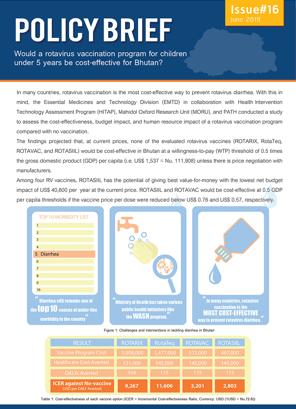 In many countries, rotavirus vaccination is the most cost-effective way to prevent rotavirus diarrhea. With this in mind, the Essential Medicines and Technology Division (EMTD) in collaboration with Health Intervention Technology Assessment Program (HITAP), Mahidol Oxford Research Unit (MORU), and PATH conducted a study to assess the cost-effectiveness, budget impact, and human resource impact of a rotavirus vaccination program compared with no vaccination.