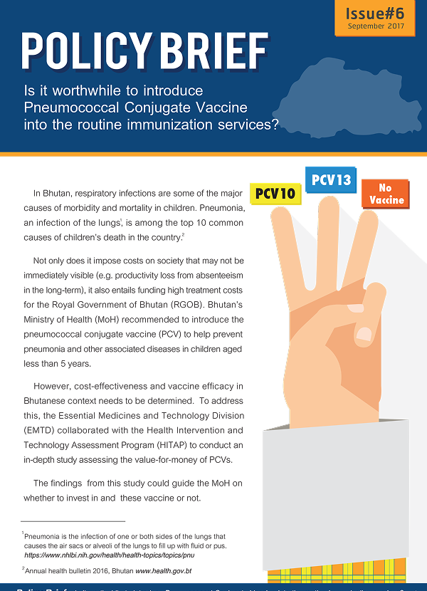 However, cost-effectiveness and vaccine efficacy in Bhutanese context needs to be determined. To address this, the Essential Medicines and Technology Division (EMTD) collaborated with the Health Intervention and Technology Assessment Program (HITAP) to conduct an in-depth study assessing the value-for-money of PCVs.