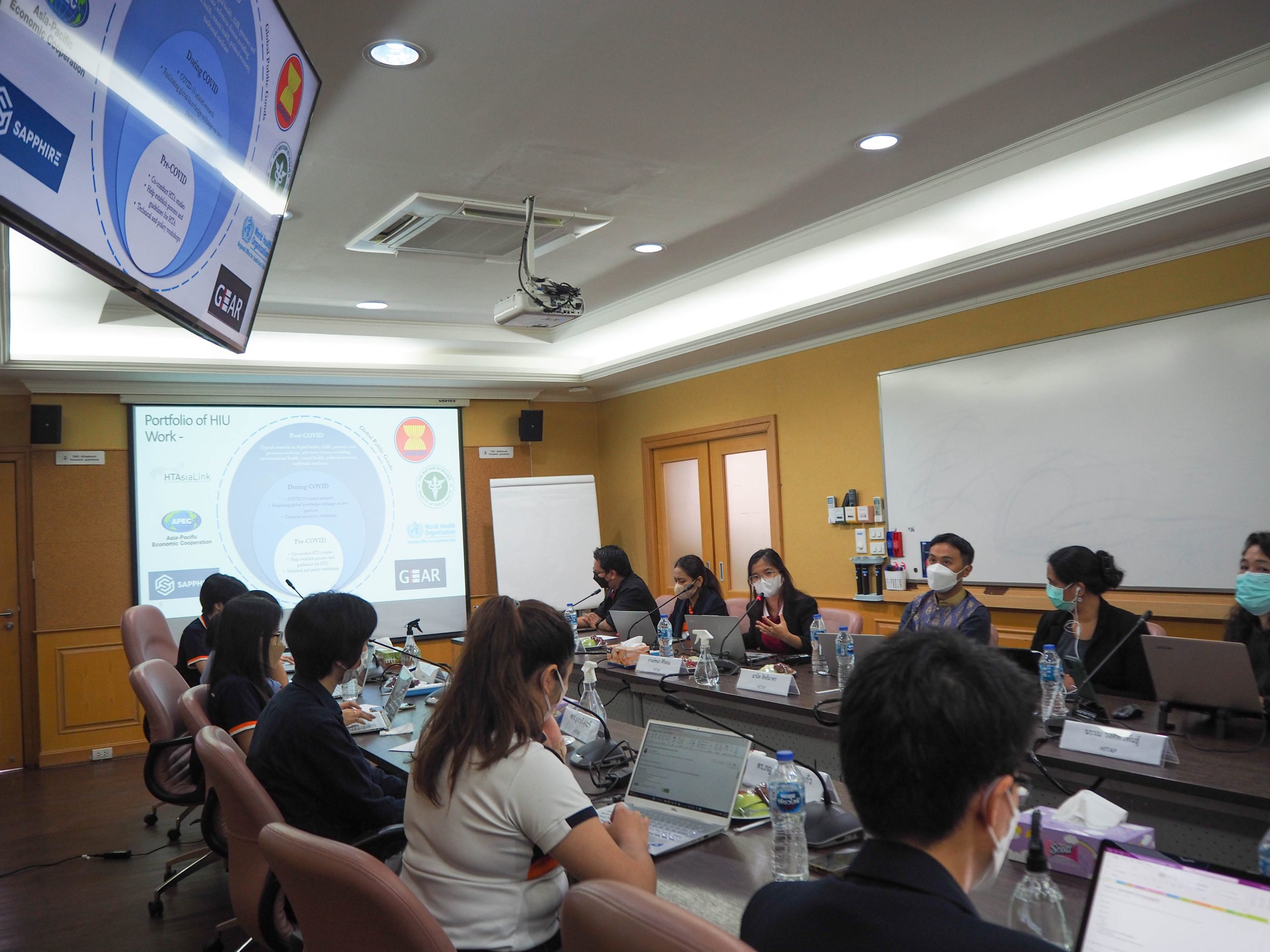 ในการประชุมนี้ HITAP ได้นำเสนอภาพรวมบทบาทและภารกิจในการทำงานวิจัยเพื่อสนับสนุนระบบสุขภาพขององค์กร ทั้งเรื่องการประเมินความคุ้มค่าทางเศรษฐศาสตร์ การคำนวณต้นทุน การประเมินความเป็นไปได้ของการประยุกต์ใช้นโยบายในระบบสุขภาพ ฯ และผลงานสำคัญที่ HITAP เข้าไปมีส่วนร่วมในการดำเนินงาน เช่น การพัฒนาชุดสิทธิประโยชน์ภายใต้ระบบหลักประกันสุขภาพแห่งชาติ การประเมินความคุ้มค่าทางการแพทย์ของยาที่ใช้ในการป้องกันและรักษาผู้ป่วยโรคติดเชื้อไวรัสโคโรนา 2019 (COVID-19)ระบบบริการสุขภาพ รวมถึงการร่วมทำงานกับคณะกรรมการประมวลสถานการณ์ COVID-19 กระทรวงสาธารณสุข (MOPH intelligence Unit: MIU) เพื่อประเมินความเป็นไปได้ในการกำหนดนโยบายและ/หรือมาตรการในระบบสุขภาพ ในช่วงที่มีการระบาดของโควิด-19 เป็นต้น นอกจากนี้ HITAP ยังมีการร่วมงานกับหน่วยงานด้านสุขภาพชั้นนำทั้งในและต่างประเทศ เช่น กระทรวงสาธารณสุข สถาบันวิจัยสาธารณสุข (สวรส.) สำนักงานพัฒนานโยบายสุขภาพระหว่างประเทศ (IHPP) สำนักงานหลักประกันสุขภาพแห่งชาติ (สปสช.) มูลนิธิสาธารณสุขแห่งชาติ (มสช.) มหาวิทยาลัยแห่งชาติสิงคโปร์ องค์การอนามัยโลก (WHO) International Decision Support Initiative (iDSI) และ The Rockefeller Foundation ฯ เพื่อดำเนินงานวิจัย เสริมสร้างศักยภาพของบุคลากรและขยายเครือข่ายนักวิจัยให้มีความเข้มแข็งมากยิ่งขึ้น