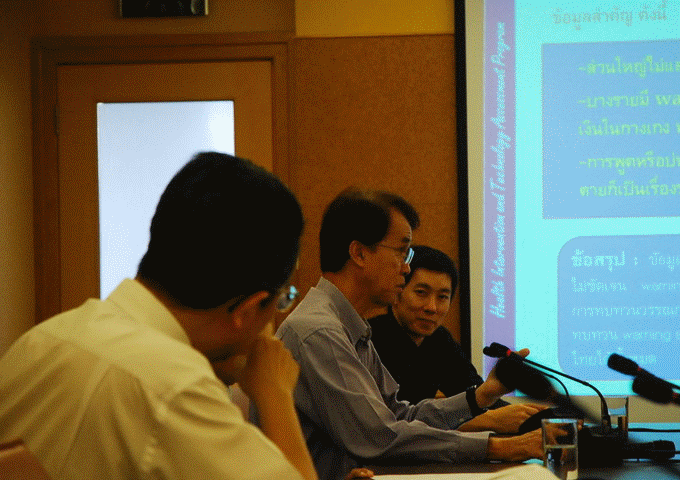 ผลการประชุมมีข้อเสนอแนะที่น่าสนใจหลายประการ เช่น การเพิ่มพื้นที่ศึกษาจาก จ.ลำพูน เพียงจังหวัดเดียวเป็นการศึกษาคู่ขนานกับภาคอื่น ร่วมทั้งข้อเสนอให้นำผลจากงานวิจัยไปต่อยอดพัฒนางานสื่อสารหลายหลายรูปแบบที่จะให้ความรู้ประชาชนเรื่อง Warning Sign เพื่อสร้างการเฝ้าระวังในกลุ่มเสี่ยง