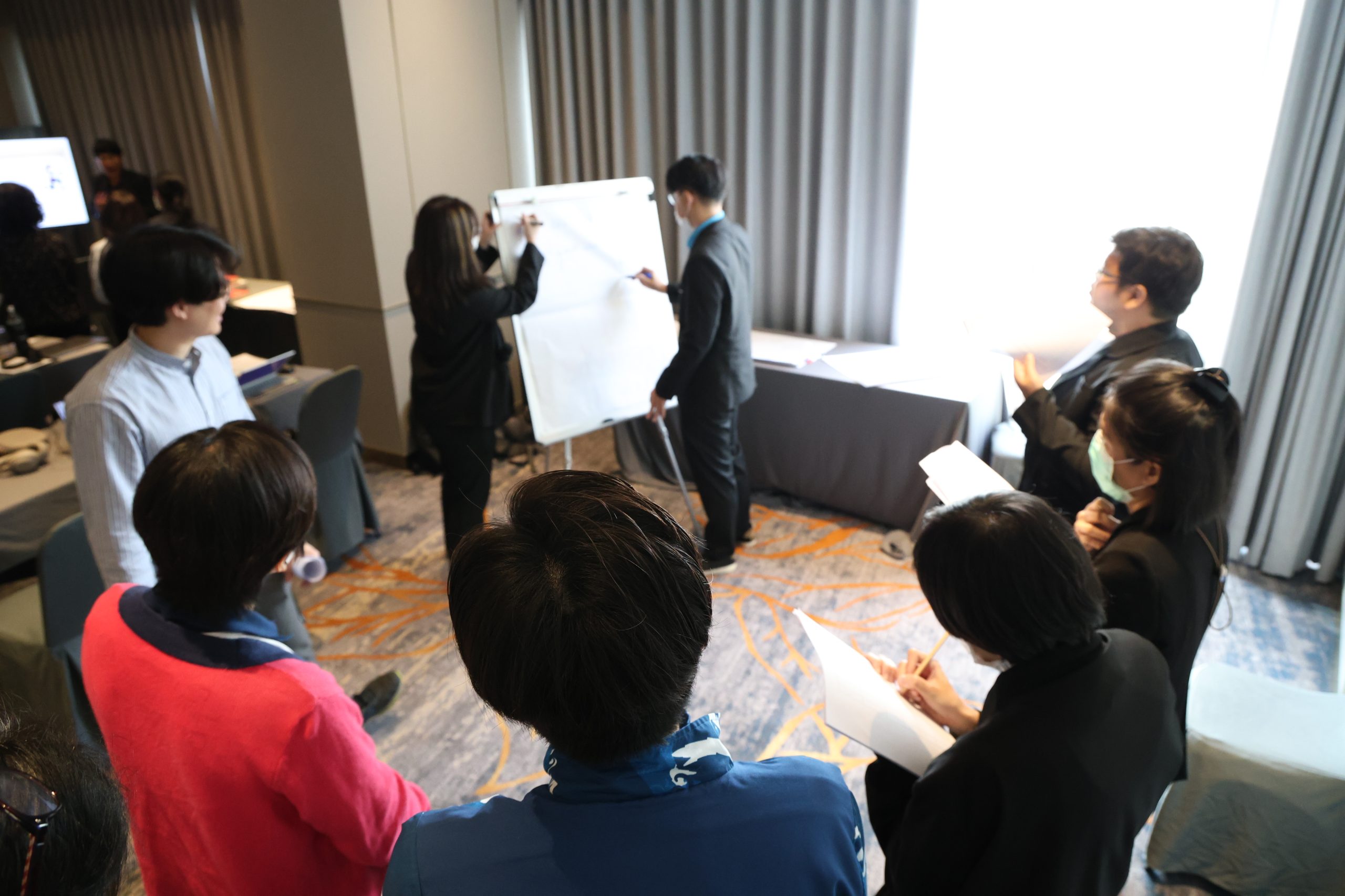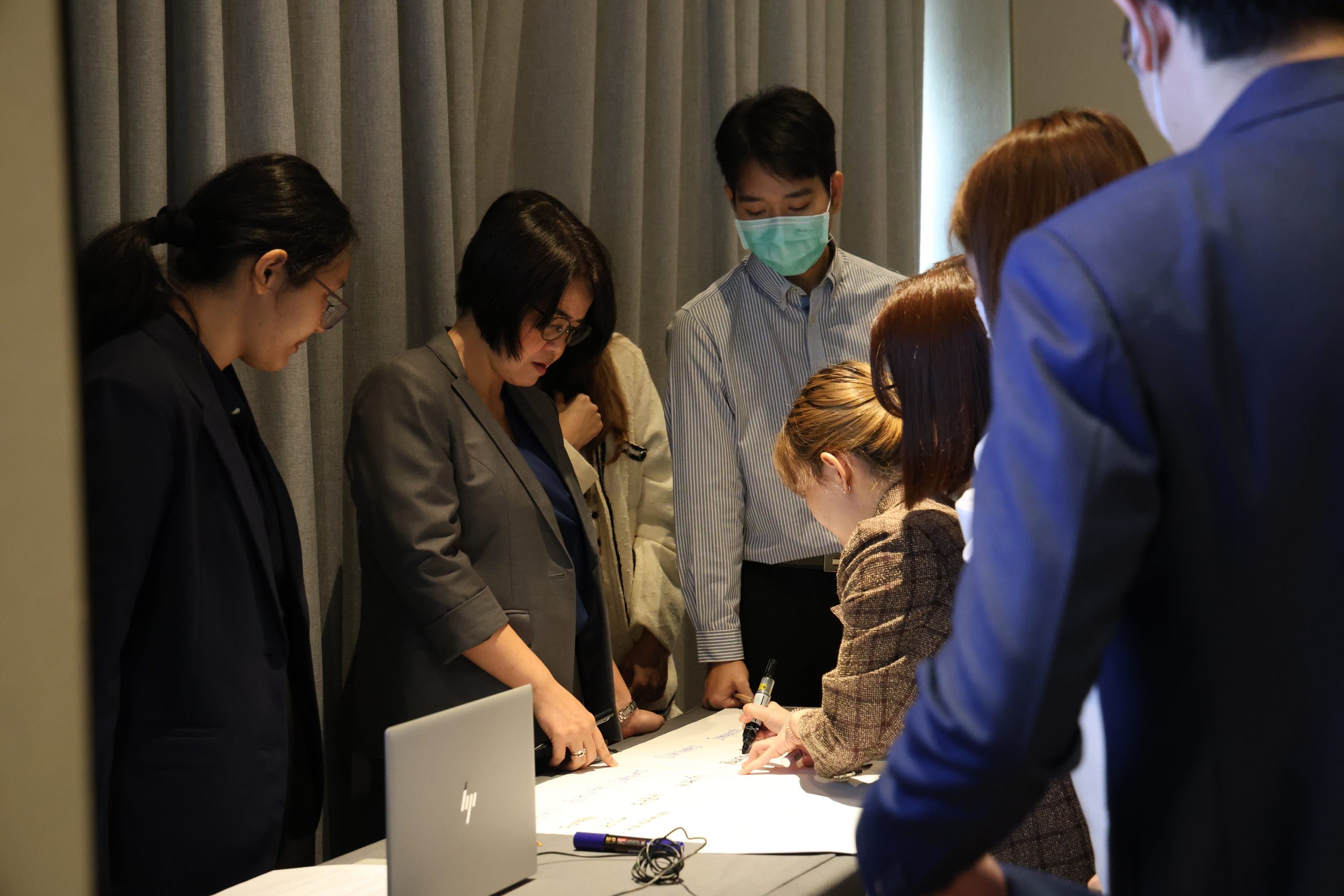 ผู้เข้าร่วมกิจกรรมระดมความคิดและแลกเปลี่ยนความรู้ร่วมกันระหว่างการอบรมเชิงปฏิบัติการ